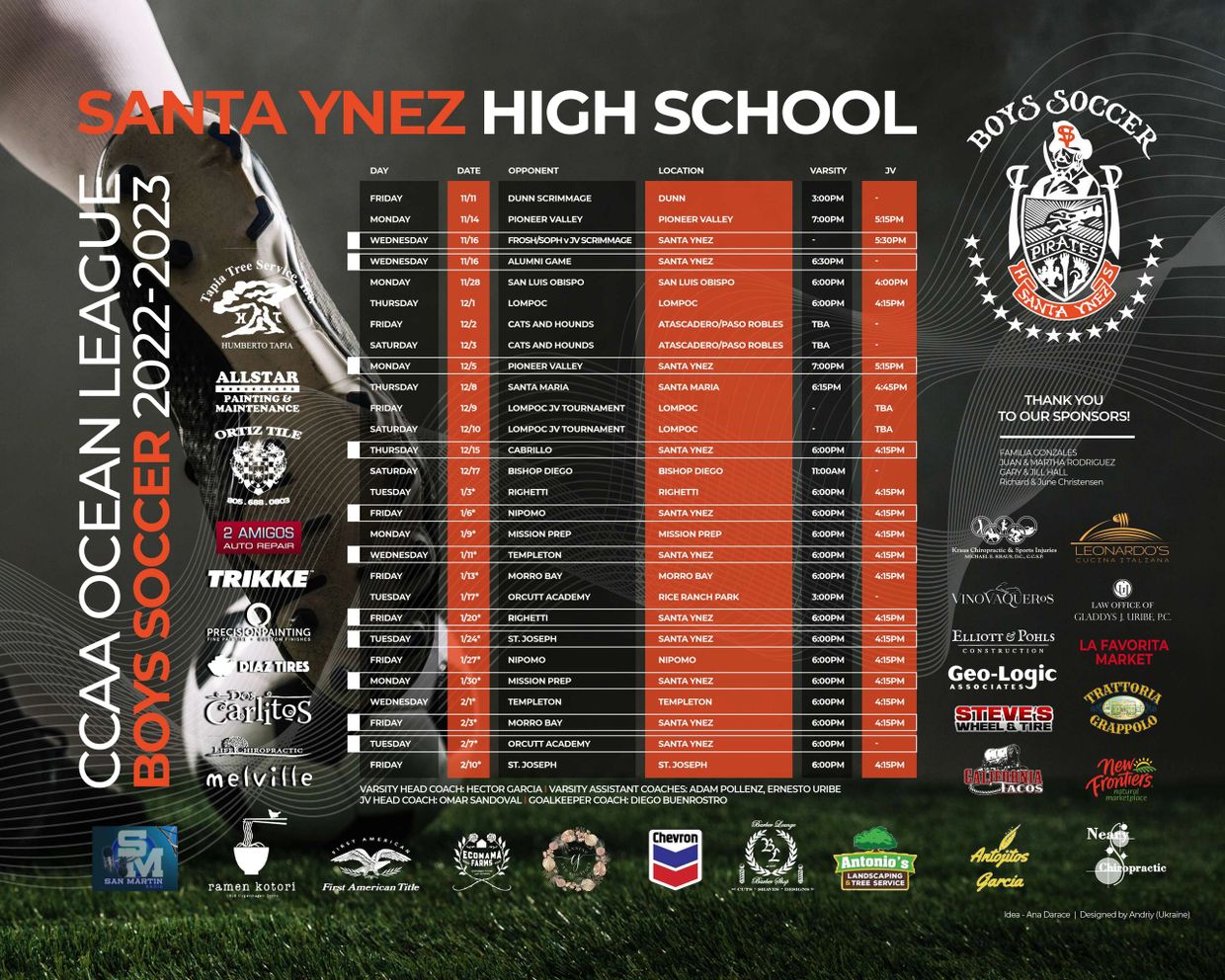 The Santa Ynez High School Boys Soccer Team is in need of your help. Due to underfunding of athletic programs, the team relies upon sponsorships and donations to help pay for their uniforms, equipment, tournament fees. travel costs, awards, and so much more. For an advertisement fee of $100, your logo will be placed on our “Orange Board” poster that will be proudly displayed in the windows of our sponsors and in other prominent locations, our website and on our social media channels.